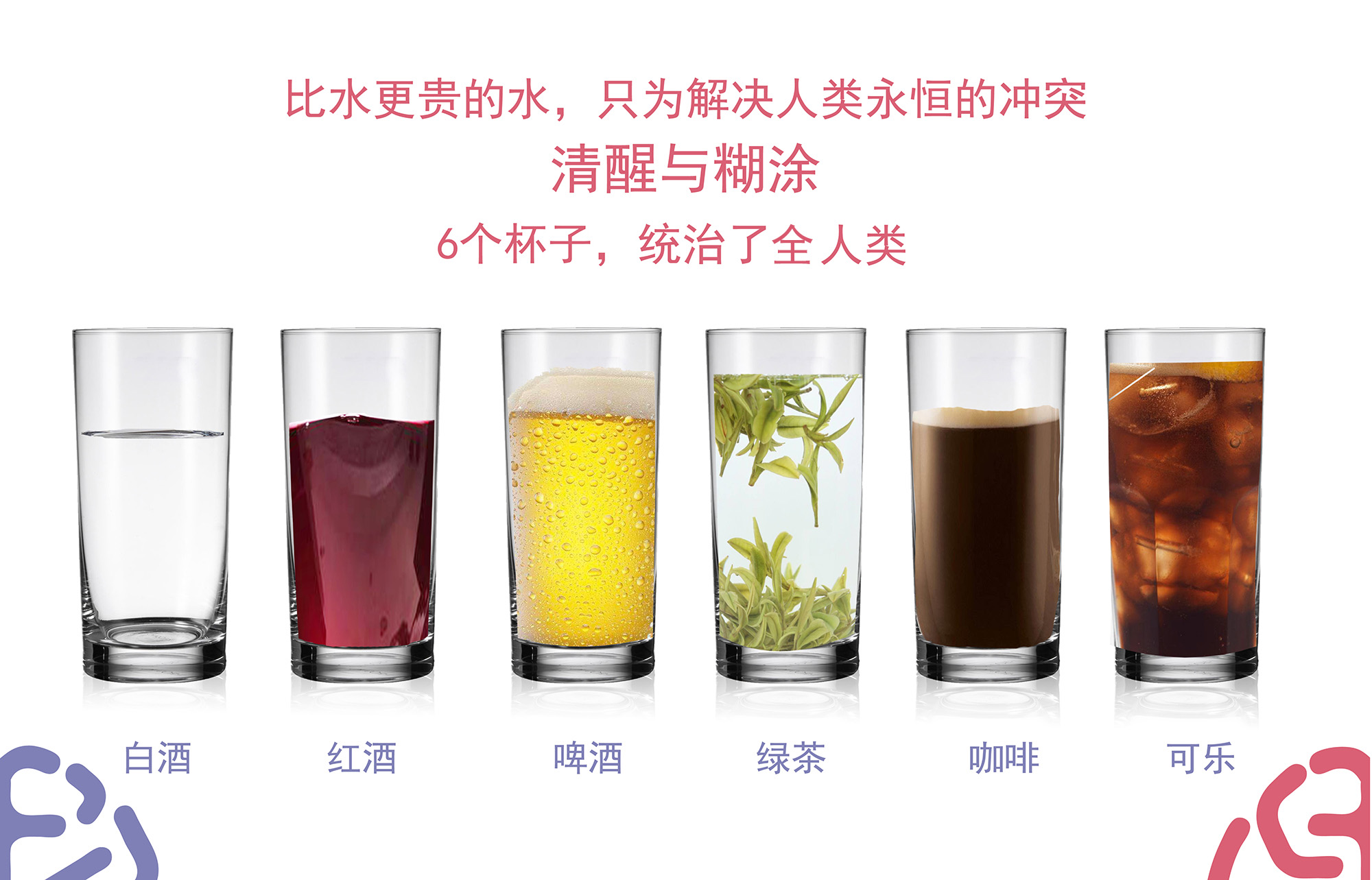 伟大的企业,启程的是产品,抵达终点站的是品牌;伟大的品牌最终和消费者沟通的一定是高于产品,高于需求的理念,来自人的七情六欲,来自人类的欲望,比如下面的六个杯子:
