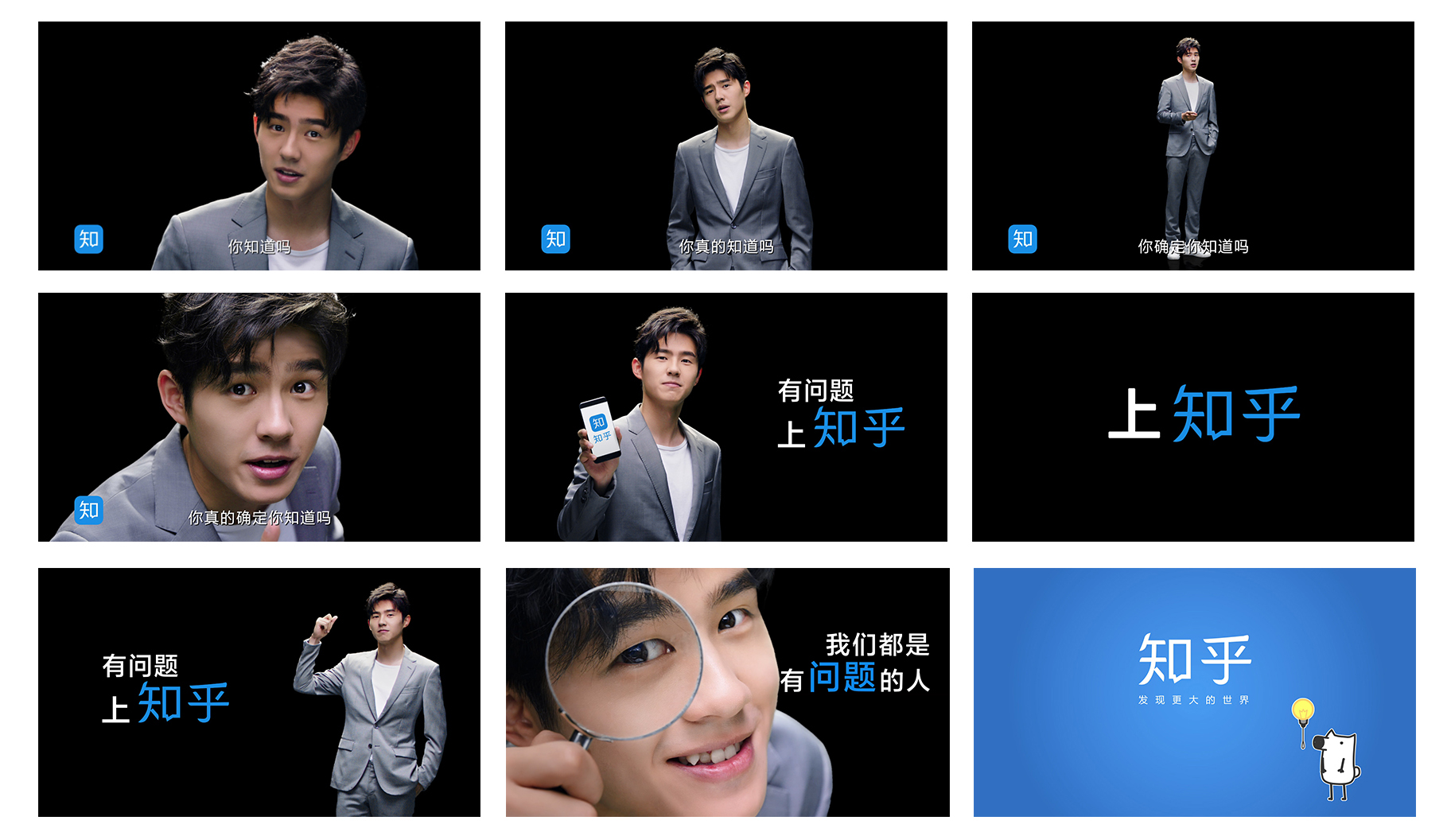 ②产品矩阵的规模化:让更多的人知道知乎能干嘛——由刘昊然快速念出知乎不同的使用方法:上知乎、问知乎、答知乎、看知乎、搜知乎、刷知乎, 不仅仅只是品牌名的重复,更是希望让用户可以知道更多获取知乎的方法和使用场景。