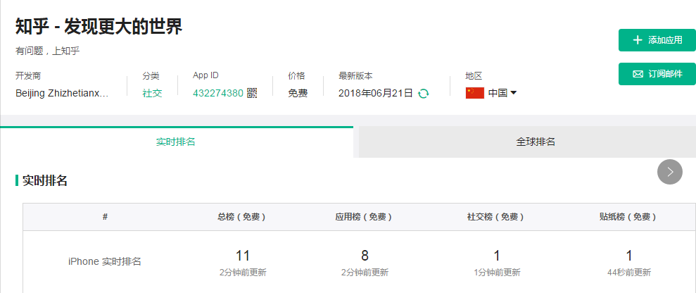 2018年世界杯期间,知乎开始传播新的战略诉求:知乎从总榜排名第119名上升到总榜第11名;在苹果应用市场社交榜冲到排名第一;从小知乎开始迈向大知乎。