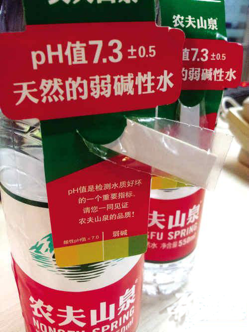 三大实验之后,农夫山泉在每个包装上都提供了酸碱测试纸,进一步强化了左脑对碱性天然水的健康认知。