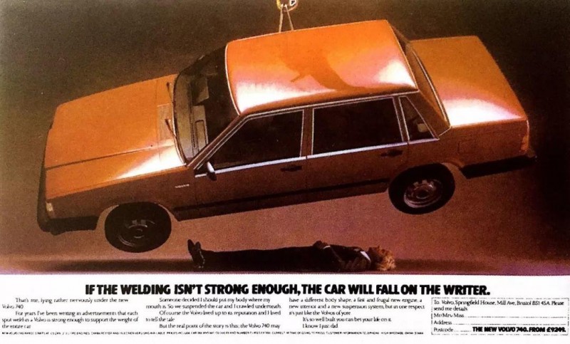 几年来,我一直在广告中吹嘘Volvo的每一个焊点,都足以承受整辆汽车。