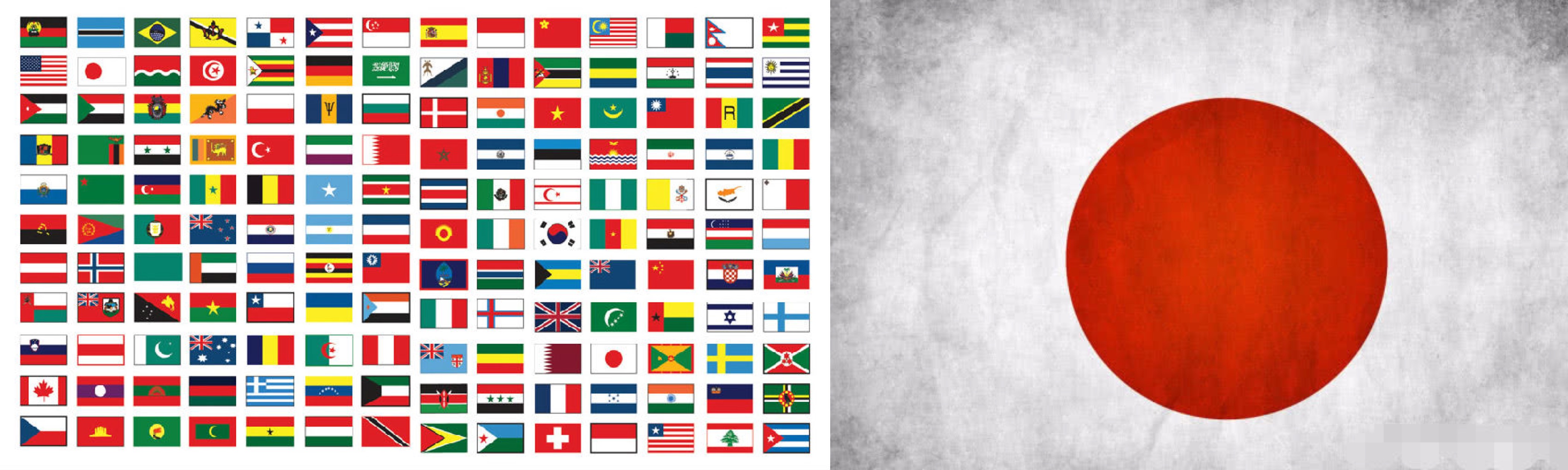 日本的国旗是全世界最有识别度的国旗,因为它用了太阳的元素: